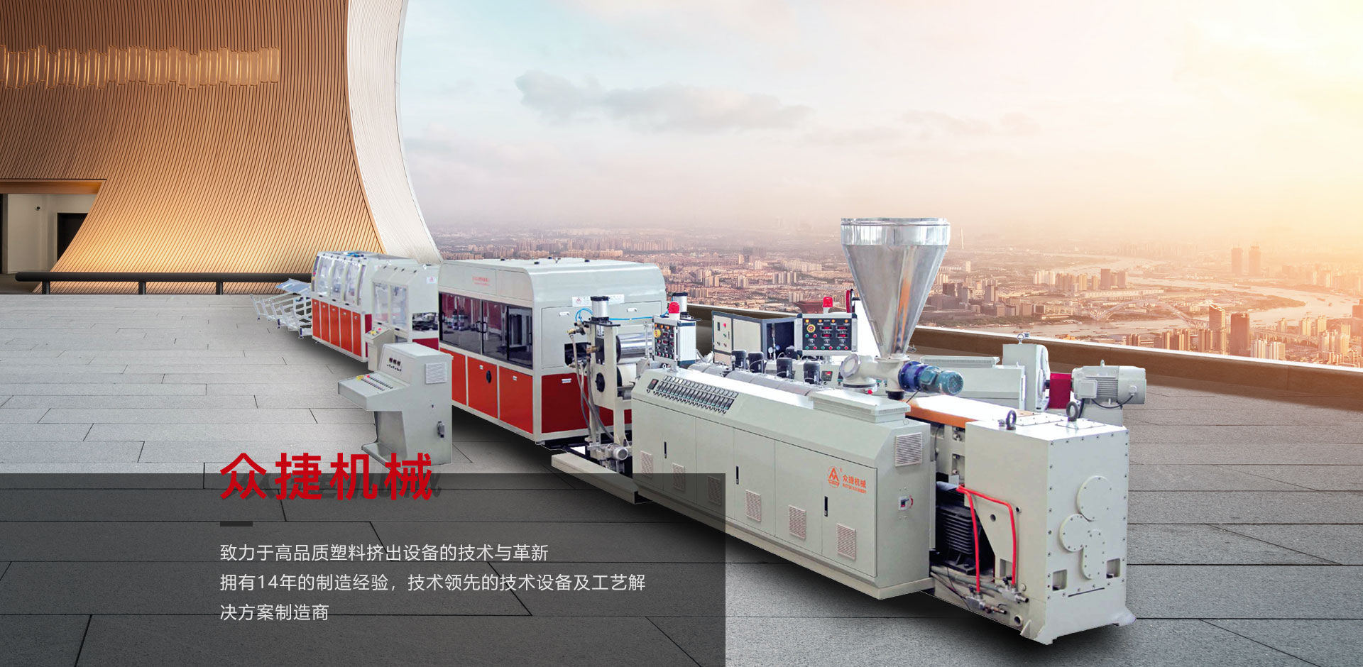 塑料擠出機制造的技術和市場領導者,眾捷機械為裝飾、異形材料、木塑、發(fā)泡板、PVC管材提供完美的解決方案。類塑料基礎設備領先水平,在創(chuàng)新與發(fā)展中已經有14年歷史。